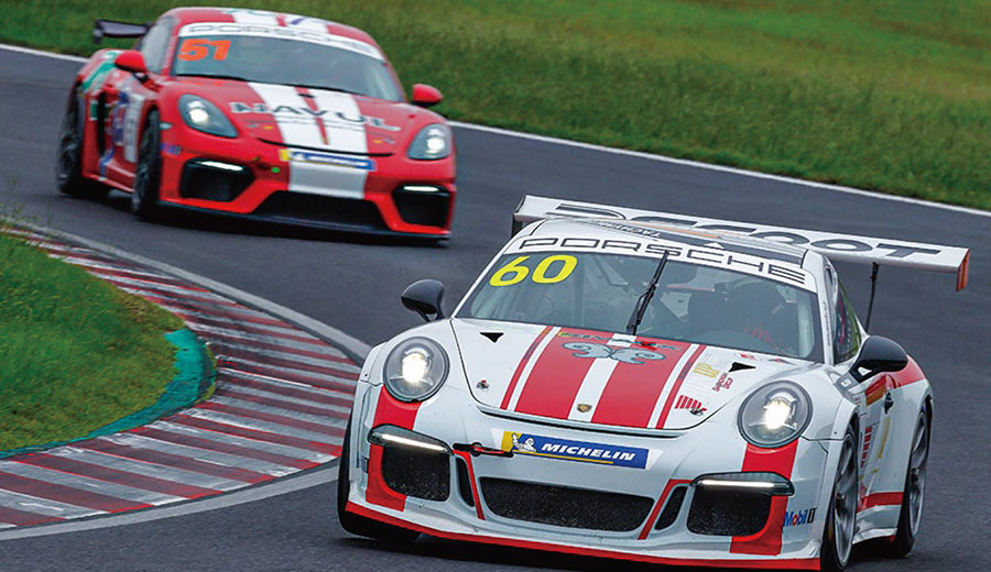 オープニングラップでトップ7台は順位を入れ替えることなく、クリーンな展開で慎重にレースに入っていった。後方ではレインタイヤを巧みに温めた#25 久岡が、13番手グリッドから8位ポジションまでジャンプアップに成功。だが2ラップ目の第2コーナーで4位ポジションを走行していた#55 田中誠也がスピンし、一時コース外に出た後に復帰、最後尾からの追い上げとなった。