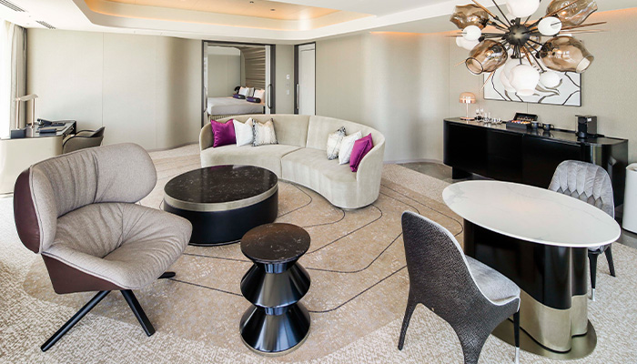 客室は110㎡の広さを有するザ・カハラ・スイートへのご案内となります。