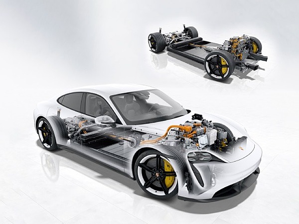 EVの運動性能を語るうえで欠かせないのは、モーターとバッテリーだ。フロントとリアアクスルに搭載された電動モーター、そして電気自動車に初めて搭載された2速トランスミッションによって、わずか2.8秒で0-100km/hまで加速、最高速度は260km/hで、最大761馬力の出力(※タイカンターボS:欧州参考値)を誇る。