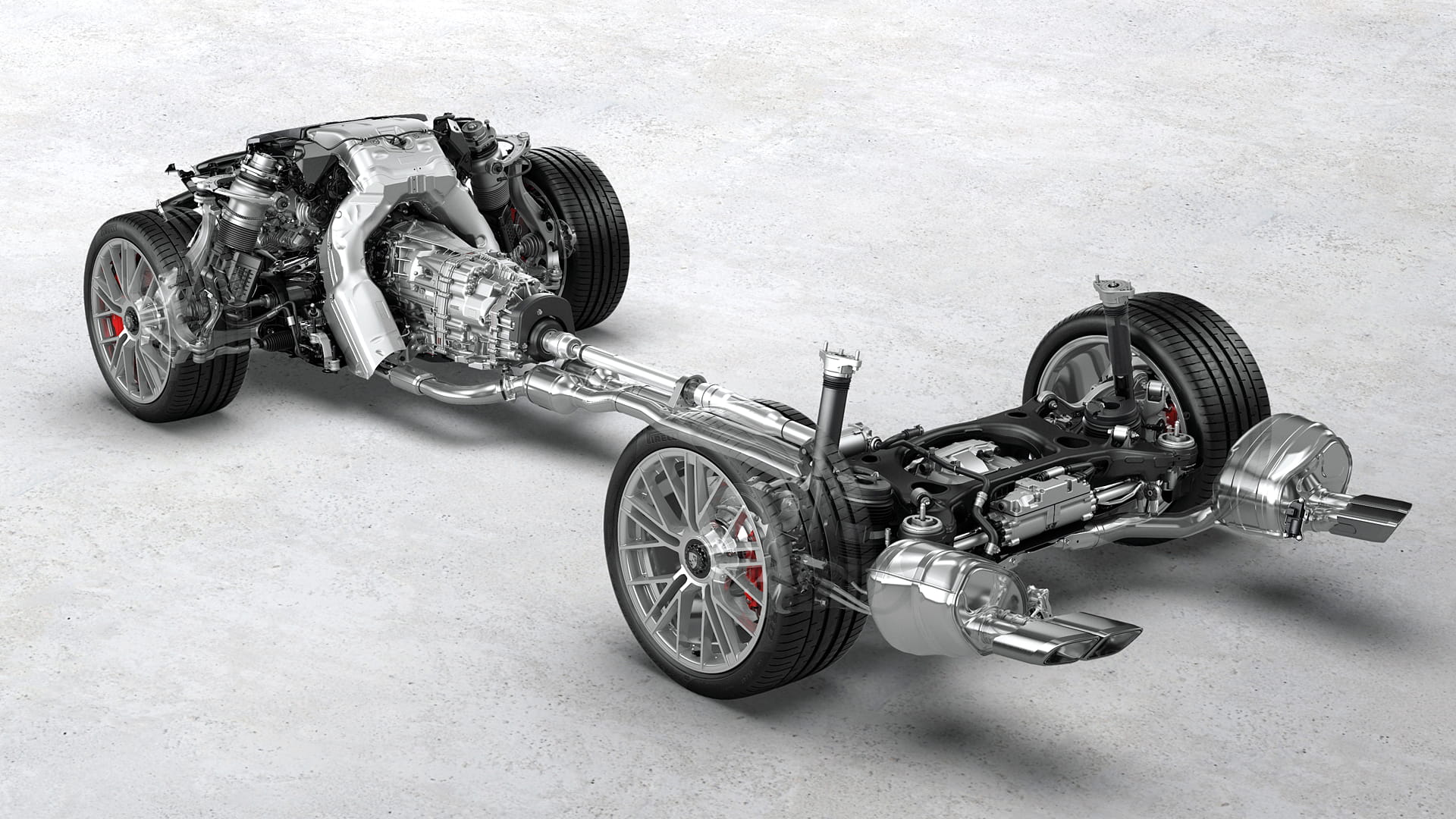新型Panameraには、ポルシェアクティブサスペンションマネージメント(PASM)を備える2チャンバー、2バルブ技術のエアサスペンションが標準装備されています。このシステムにより、路面の損傷や横方向に伸びる路面の継ぎ目による衝撃を大幅に緩和すると同時に、ダイナミックな走行時に車体の安定性を確保することが出来ます。